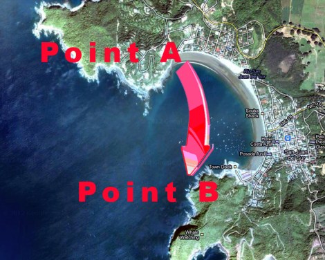 This is San Juan del Sur and the route they choose to take… Also, those specks in the water are boats, not dead butterflies.