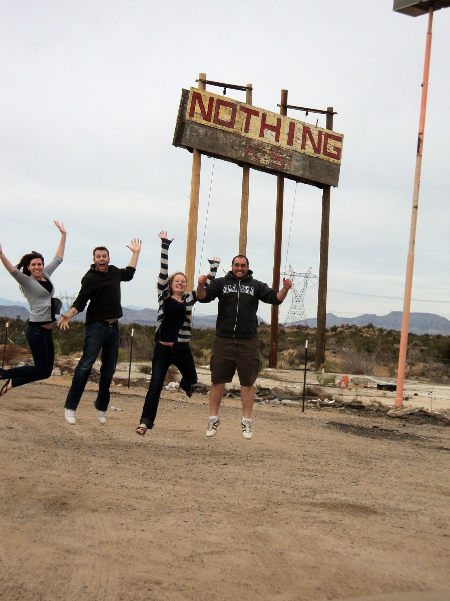The burst setting allowed us to actually get a shot of all of us in the air at once while jumping for nothing in Nothing, AZ on a road trip last winter.