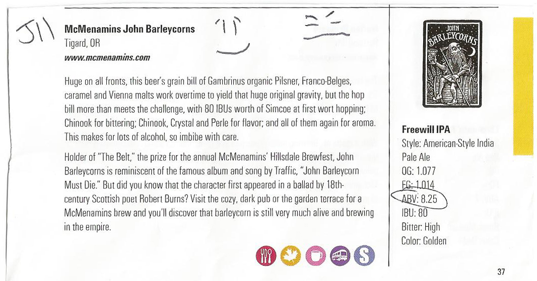 With our new system in place we needed an equally effective rating method. We chose faces; they ranged from frowny faces to queasy faces to exuberantly smiley faces. Some we agreed on, others not so much. Being Irish, he of course loves a good, dark, Guinness-like beer. Being a Portlander, I prefer a more hop-heavy style.