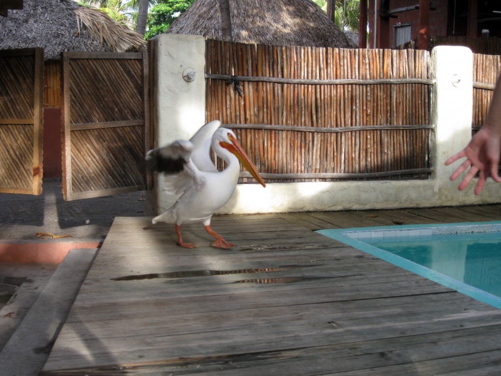 Nowadays, traveling is what seems to bring the bad birds my way – it started in Guatemala. Coming back in from the beach one day, Andy and I spotted a large, brightly colored pelican statue that hadn’t been there before. It was big and cartoonish and so we decided to get a better look. We strolled right up to it, speculating on where it might have come from. Suddenly, when we were just a few feet away, it turned its head and came at us. Let me tell you, that was no statue.