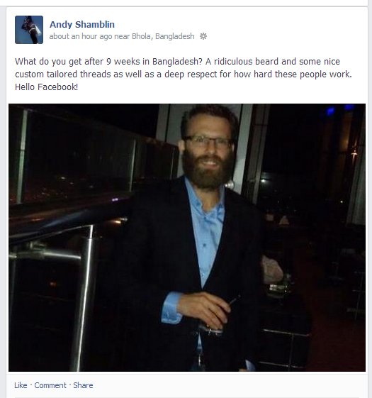 So yeah, needless to say, he’s been growing his beard out. I think he thought it would be this really cool thing to do but every time I talk to him he’s whining about it. I’m not sure if it will even last through Dubai let alone until he gets back home to Portland to show his buddies. I’ll keep you posted.