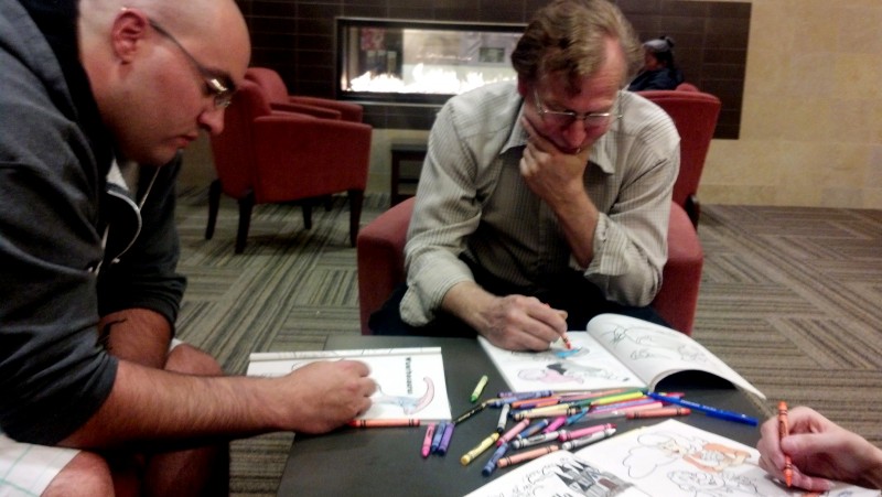 My father-in-law and our friend Chris keeping busy in the waiting room during surgery.